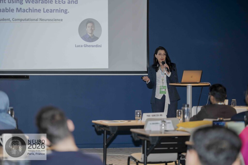 The presentation, titled The NEED Tool: A Novel Framework for Early Screening of Cognitive Impairment using Wearable EEG and Explainable Machine Learning, focused on the critical diagnostic gap that leaves many patients with Alzheimer’s disease and other dementias undiagnosed or diagnosed too late. Traditional neuropsychological assessments, largely based on subjective evaluation, often lack sensitivity in the earliest stages of the disease.